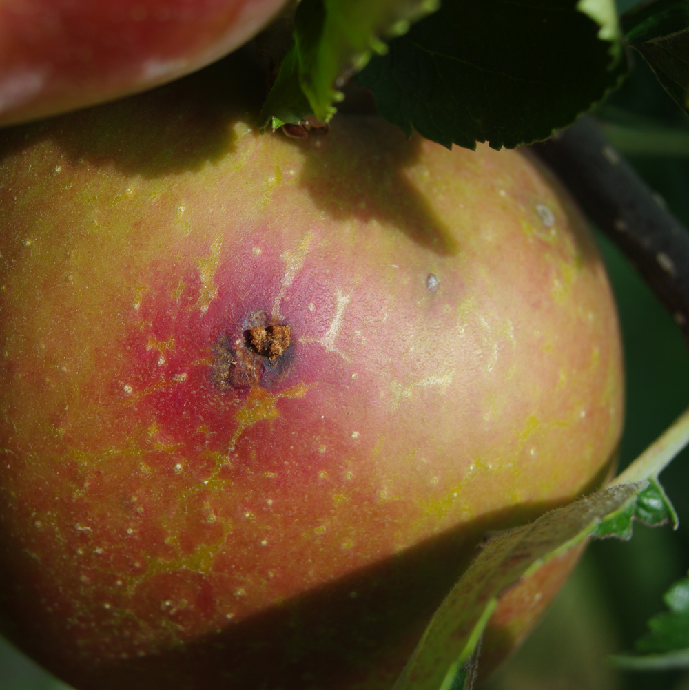 La tavelure du pommier est stratégique : c’est une maladie associée mouillage du feuillage et du fruit au printemps uniquement, … Plus les feuilles sont mouillées longtemps et par temps doux plus le risque est fort et une intervention raisonnée obligatoire entre mars et mai seulement. . On limite le volume de spores hivernantes du champignon tavelure en broyant les feuilles sur le sol afin qu’elles soient digérées plus vite par ses spécialistes (vers de terre, insectes nécrophages, …).